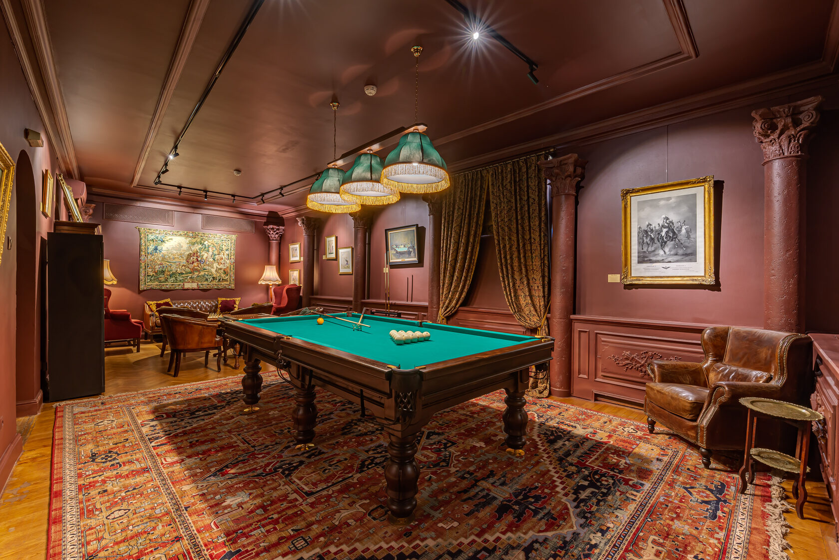 The billiard room is quiet and cozy. The atmosphere here itself is conducive to peaceful conversations or discussion of future plans over a leisurely game of Russian billiards.