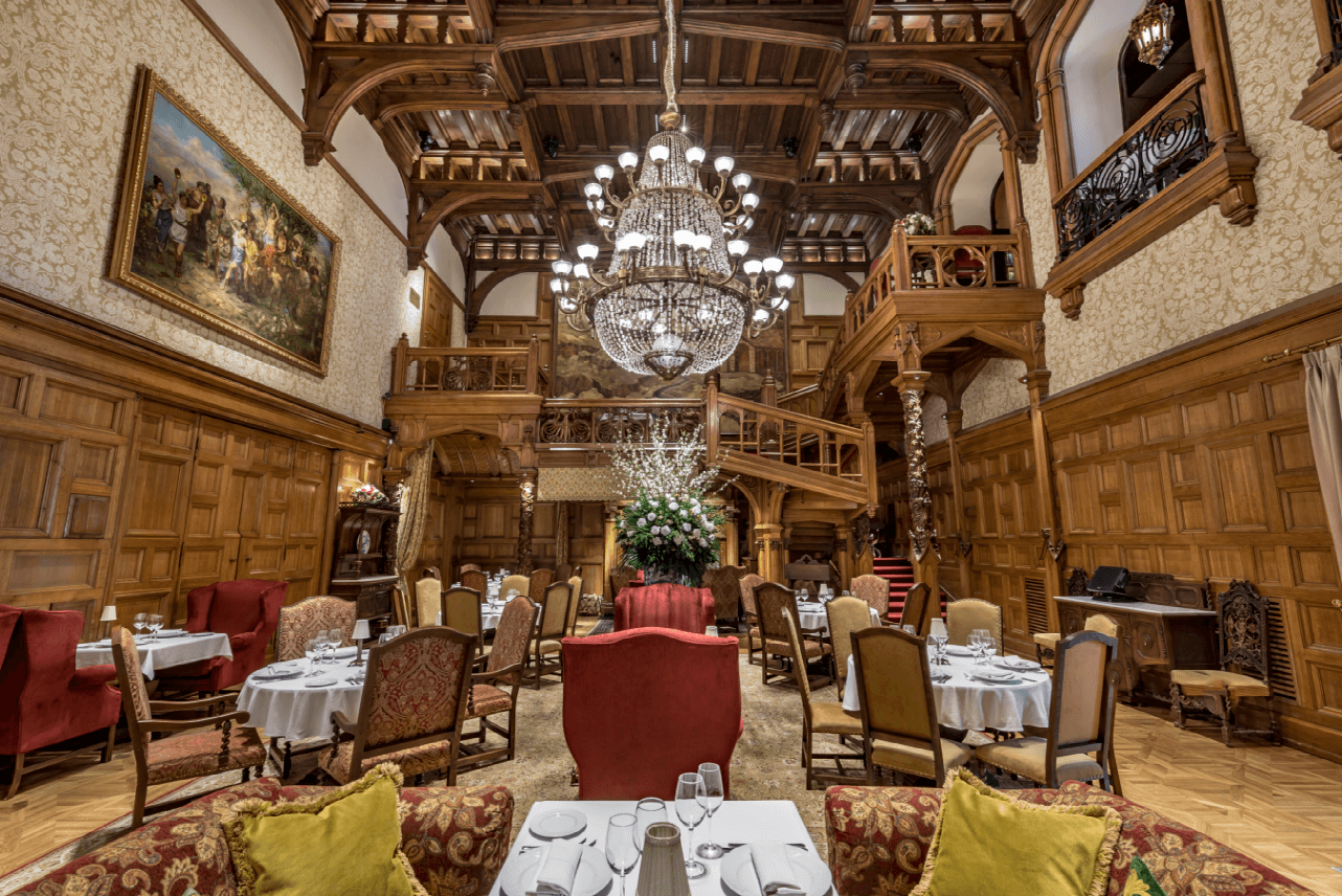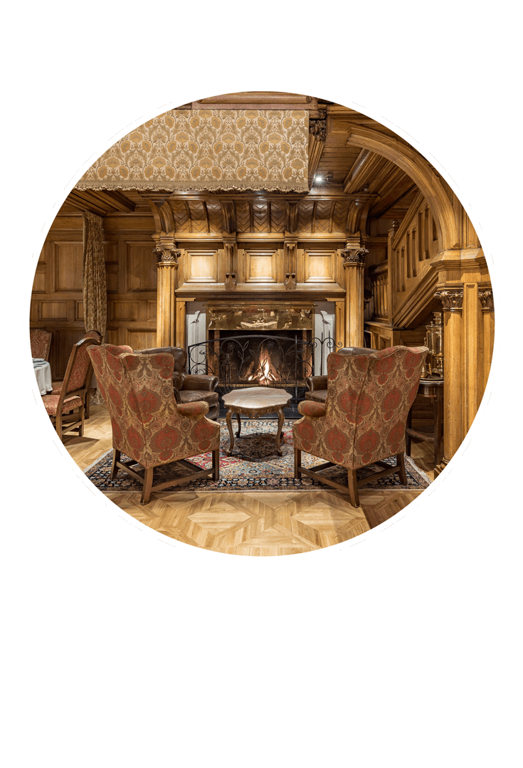 The Oak Hall is the largest and most luxurious out of all the chambers in the Club. The Hall has two levels. A large part of it is occupied by a curving oak staircase supported by four carved sandalwood columns. The decorative accent is magnified by a massive three-tiered crystal chandelier presented to the writers by Joseph (Iosif) Stalin.